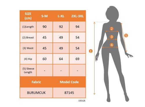 • Modelin Ölçüleri: Boy:165, Kilo:55, Göğüs:90, Bel:72, Kalça: 100