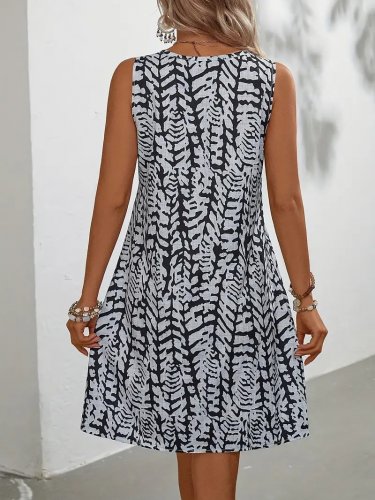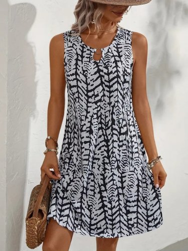 Kadın sıfır kol yakadan halka detaylı desenli kısa bürümcük elbise